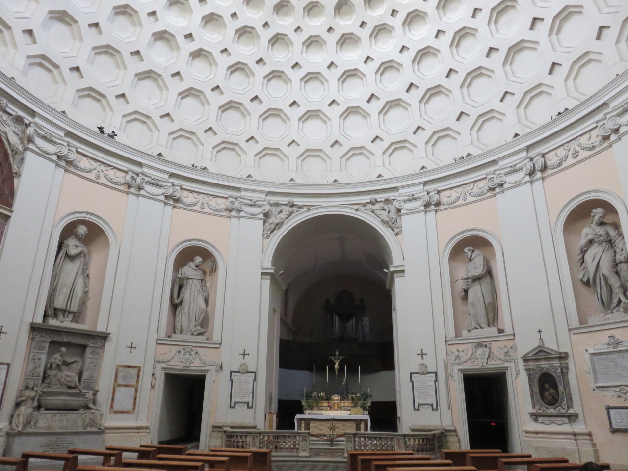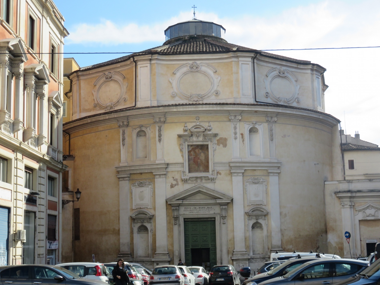 共和国広場からサン・ベルナルド広場に向かうと、このサン ベルナルド アッレ テルメ聖堂がありました。聖堂の前には広場があるのですが、駐車場化しているので車に注意して訪問しました。円形の小さな教会ですが、ディオクレティアヌス浴場の一部だそうで驚きました。