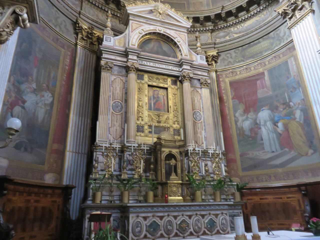 ジュリア通りをフランス大使館からナボーナ広場に向かう途中に立ち寄りました。内部の絵画的な装飾は素晴らしく、ローマと言わずイタリアの教会は何処も立ち寄るべきだと感じました。サンタ・ルチアはシラクーサの守護聖人であると同時に、目の守護聖人でもあるそうですが、どんな関係でローマに教会があるのか分かりませんでした。