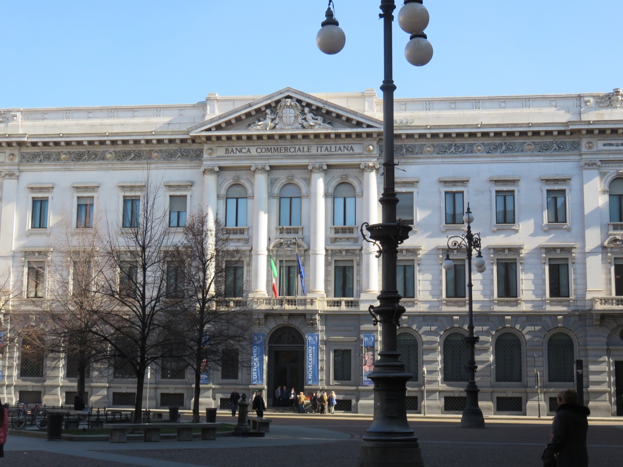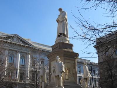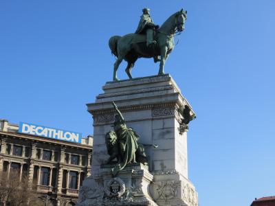 ローマでも見かけたのですが、ミラノのドゥオーモ広場の西側にあり、19世紀末にエルコーレ・ローザが完成させたイタリア統一時の国王ヴィットリオ・エマヌエーレ2世騎馬像があります。巨大な騎馬像なので一際目立つ像でした。
