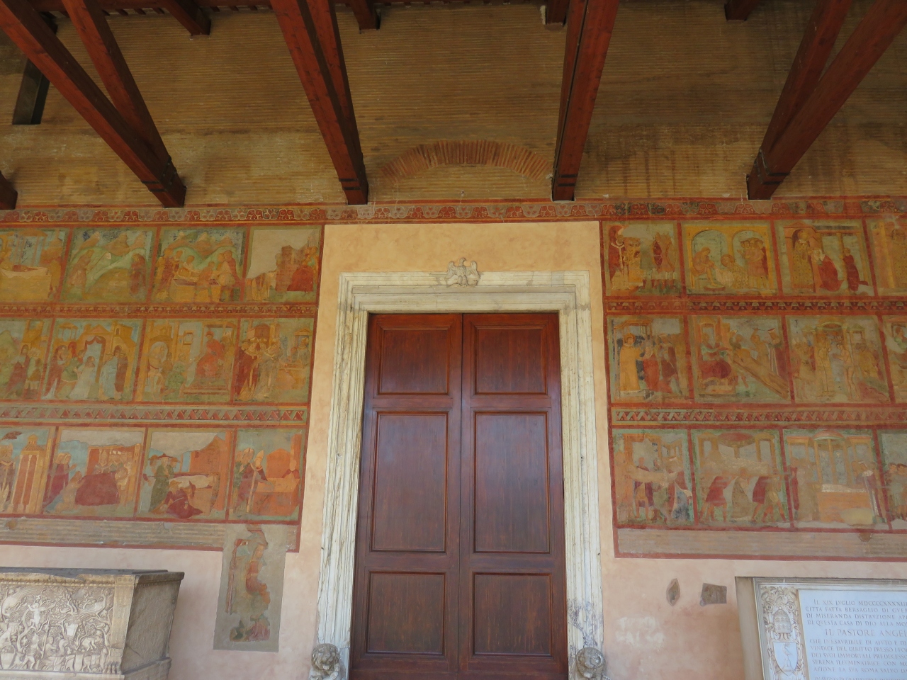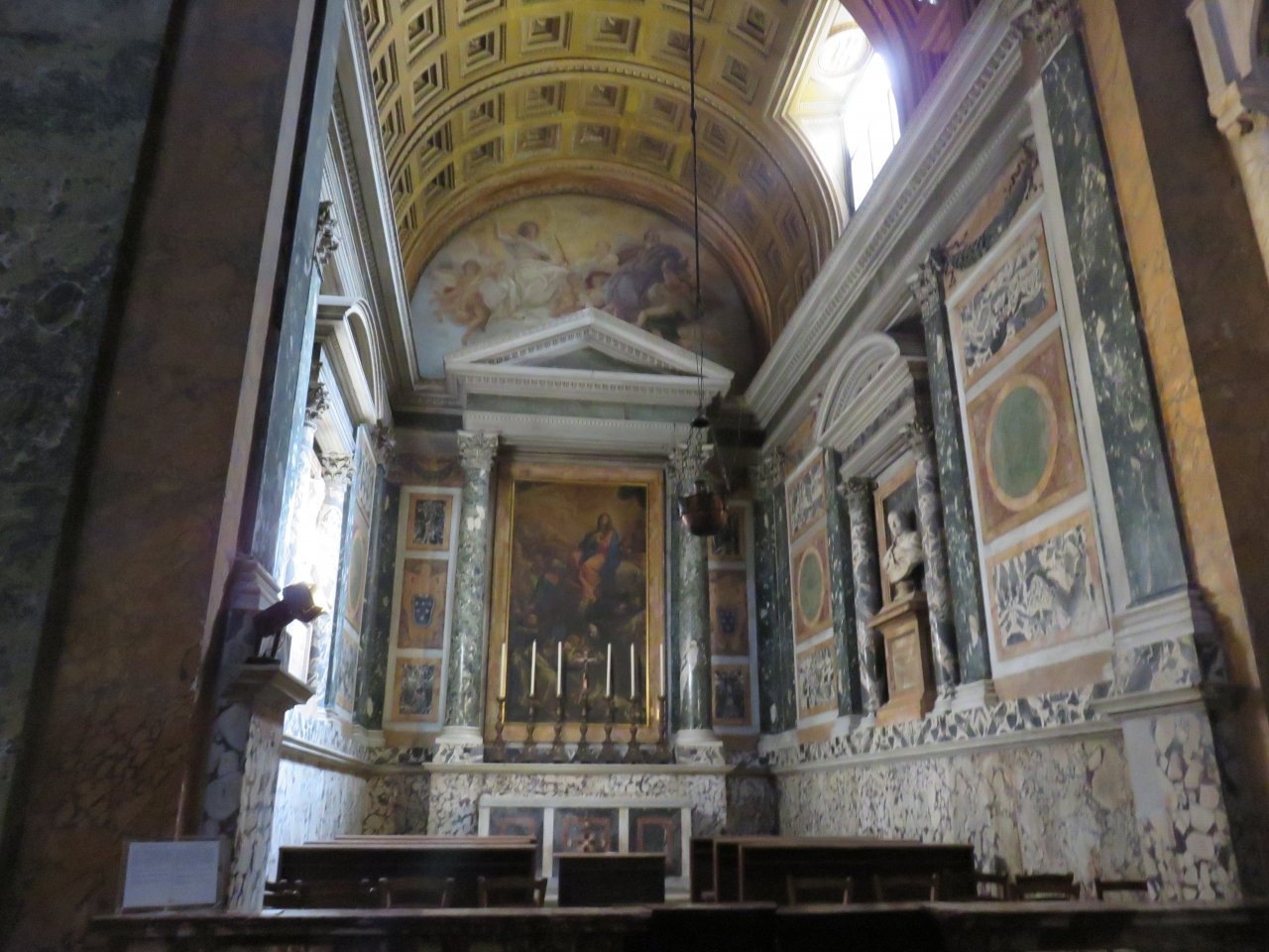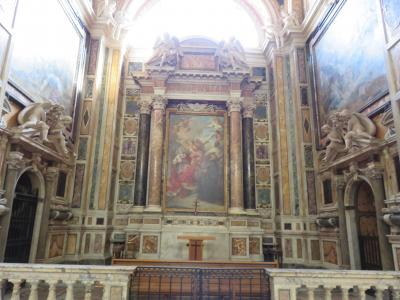 抜けて右手にあります。ローマの教会では、内部の装飾がフレスコ画も含めて