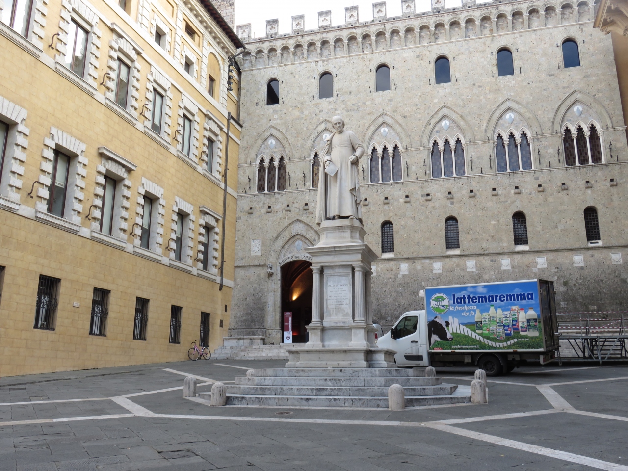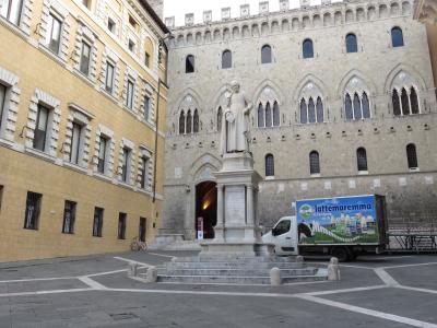 本店はイタリアのシエーナにあり、1472年に創業した、現存する中で世界最古の歴史を持つ銀行でありイタリアの大手銀行です。建物はサリンベーニ館で、13世紀後半からシエナの有力者として実権を握っていたサリンベーニ家の城館を使用しています。歴史ある銀行も国有化されるようで、営業的には厳しいようで残念です。