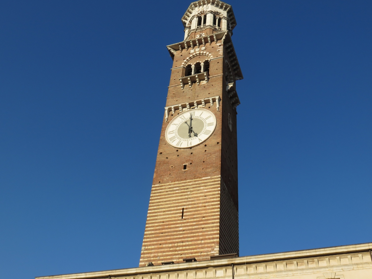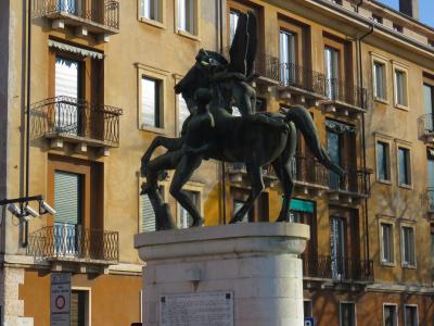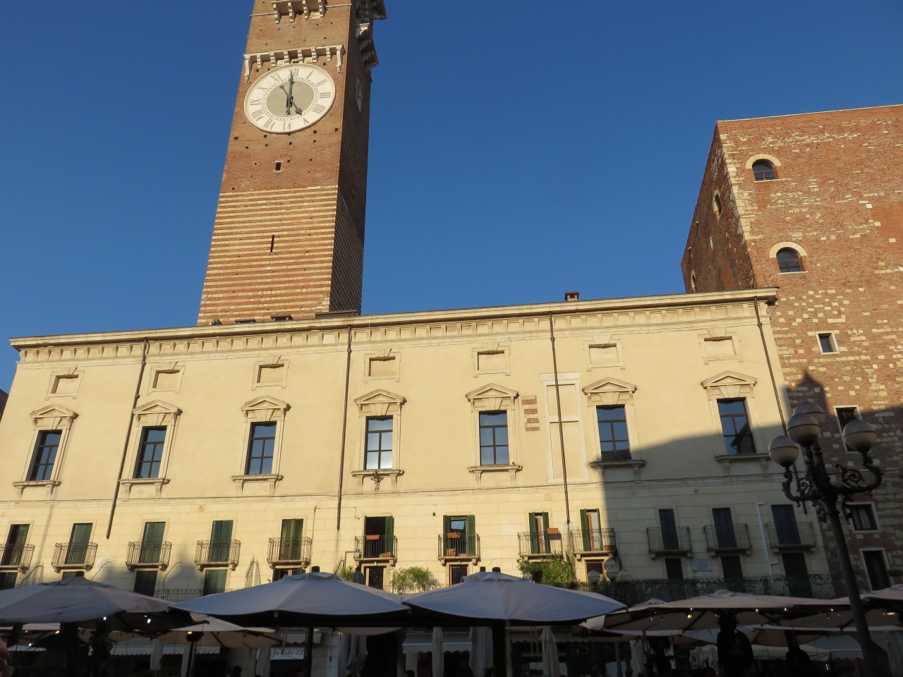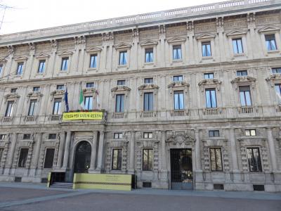 以前はラジョーネ宮が市庁舎としての役割をになっていましたが、裁判所としての機能が主体になり、町の中心のブラ広場に隣接する建物に市庁舎機能が移ったようです。中央の正面玄関を現わす屋根を支える8本のエンタシスが美しく感じられました。