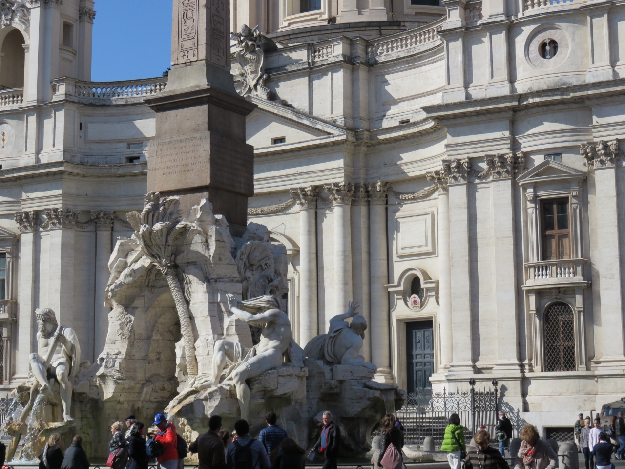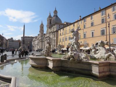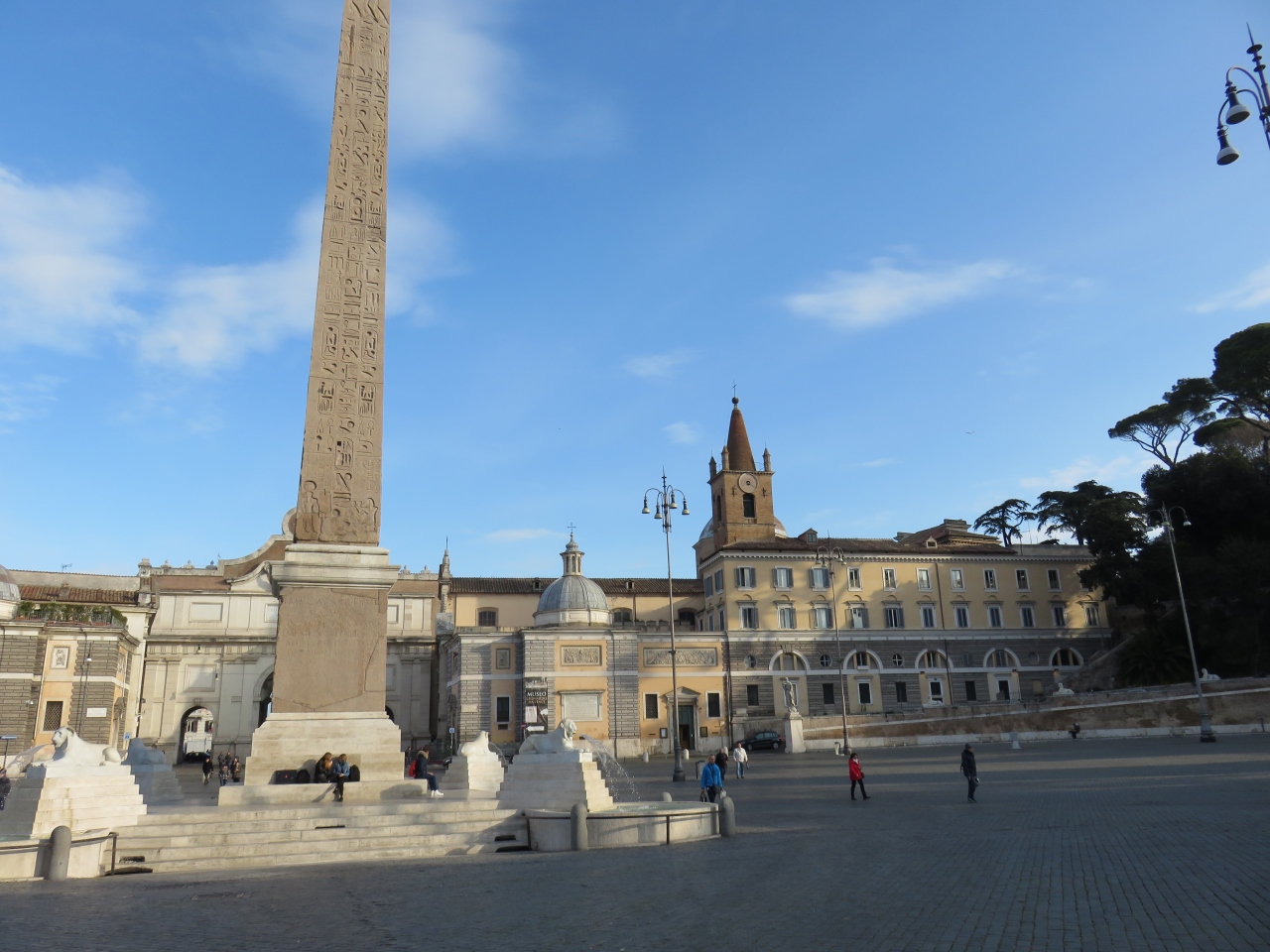 巡礼者のローマへの入口に当たる広場で、中央にオベリスクが建てられ、南に向かって3本の道路が放射状に伸びていました。この道路には2つの教会が建てられていて双子の教会とも呼ばれています。広場中心のオベリスクを囲むようにオベリスクの噴水があり、ライオンのデザインが印象的でした。