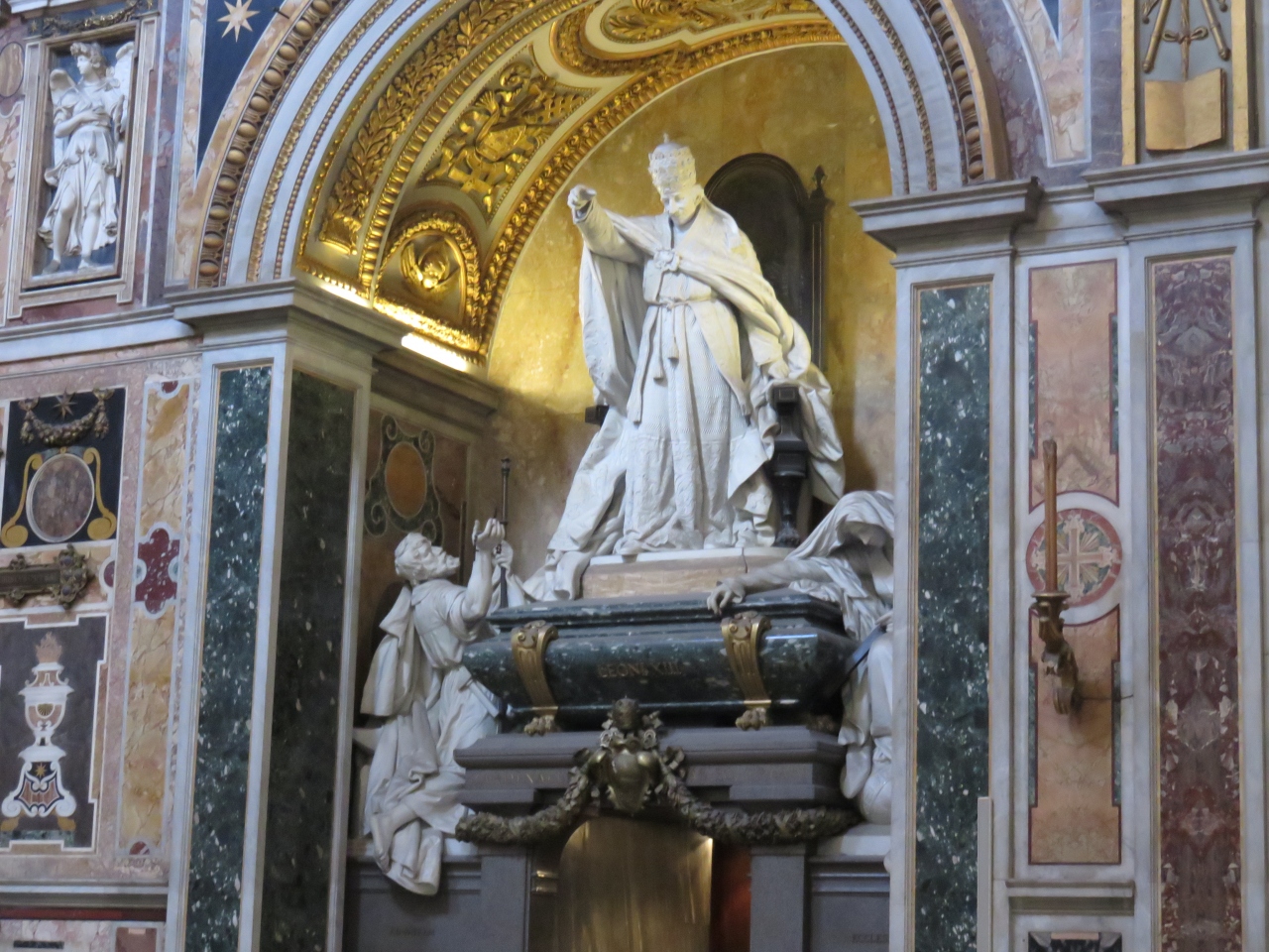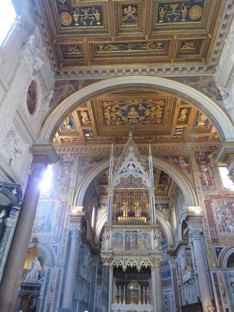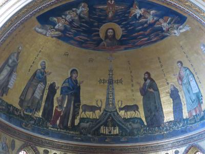 ローマの4大大聖堂のひとつで、司教座が置かれる格式の高い大聖堂は、起源は4世紀初めコンスタンティヌス帝が寄進した土地に、メルキアデ教皇により建立されました。ドームの半円球内上部にあるモザイク画で、9人の天使に囲まれた上半身の神が描かれたものは、4世紀のオリジナル作品のようです。何度見てもモザイクの装飾が素晴らしく感動しました。
