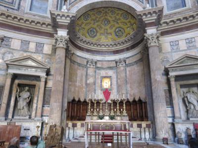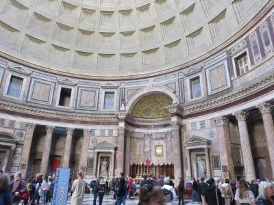 遺跡としか思えない建物で、ここはディオクレティアヌス帝が造らせた大浴場の中心部分をミケランジェロのプランをもとに建て直した教会になります。浴場の遺構の多くは隠されてしまいましたが、内部は教会というより巨大な宮殿に入ったような錯覚になりました。