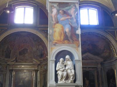 14世紀、聖アゴスティーノに捧げるために創建された教会です。カラヴァッジョ「巡礼のマリア(ロレートの聖母)」、ラファエロ「預言者イザヤ」、ベルニーニ「天使像」などの作品があることで有名です。 ラファエロの「預言者イザヤ」を見た時、ヴァチカンのシスティーナ礼拝堂にあるミケランジェロの「最後の審判」を思い浮かべました。