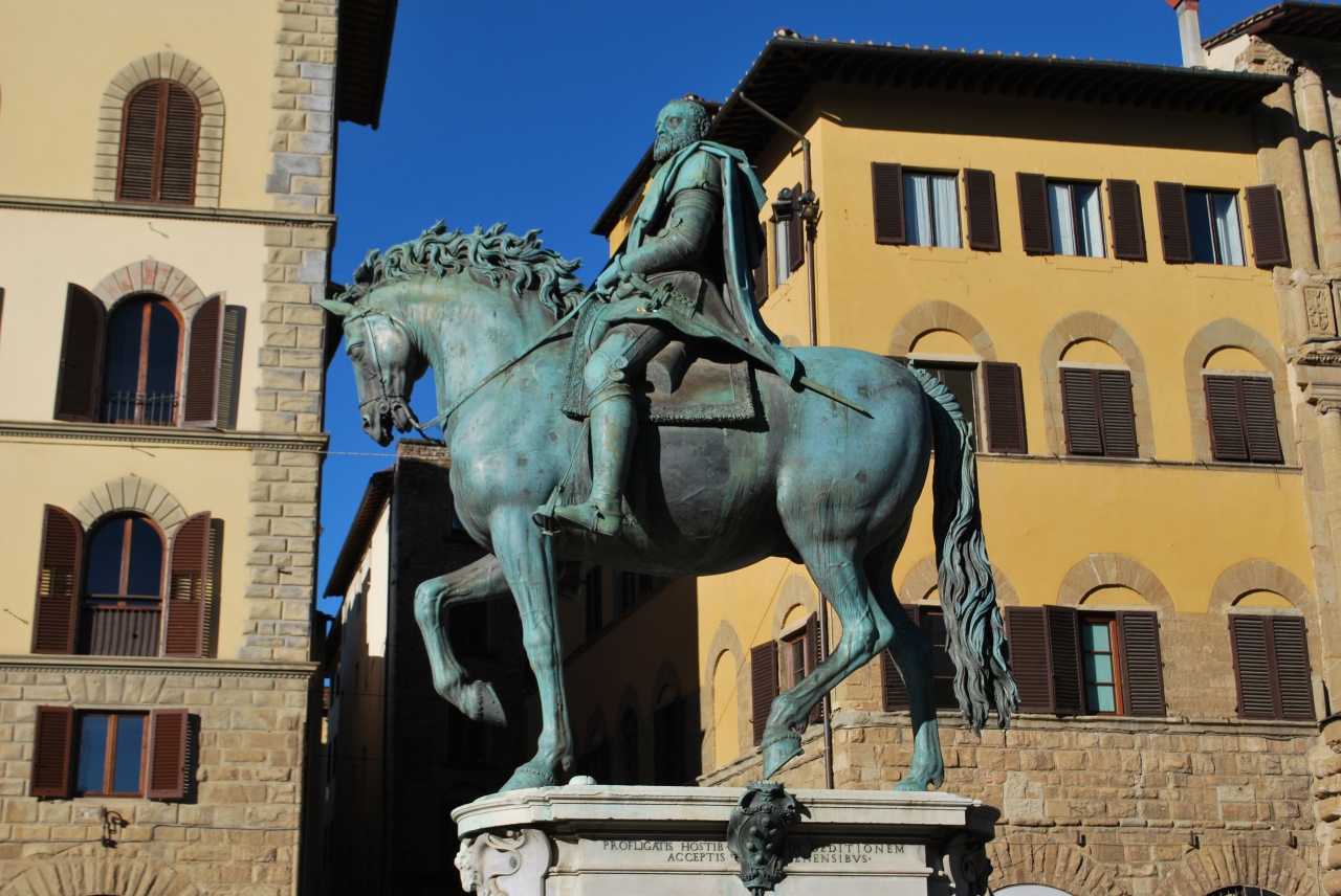 フィレンツェのドゥオーモを背にして、サンマルコ広場方面に伸びる道を進むと、サンティッシマ・アヌンツィアータ広場に突き当たります。真ん中にある像は、ジャンボローニャ作フェルディナンド1世の騎馬像です。このトスカーナに多くの富をもたらした人ですが、馬上の雄姿が素敵でした。