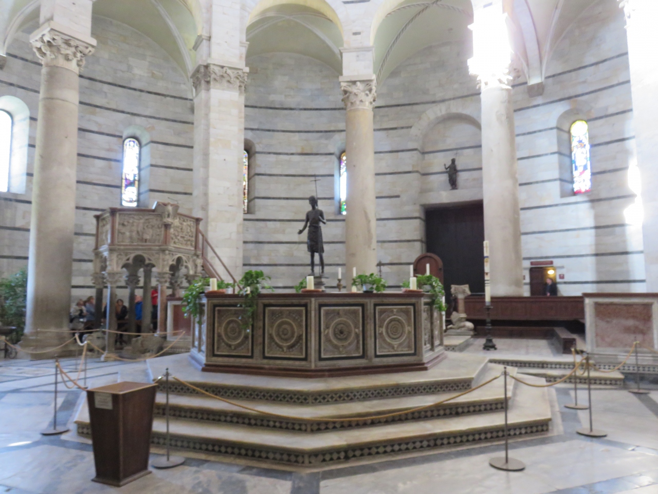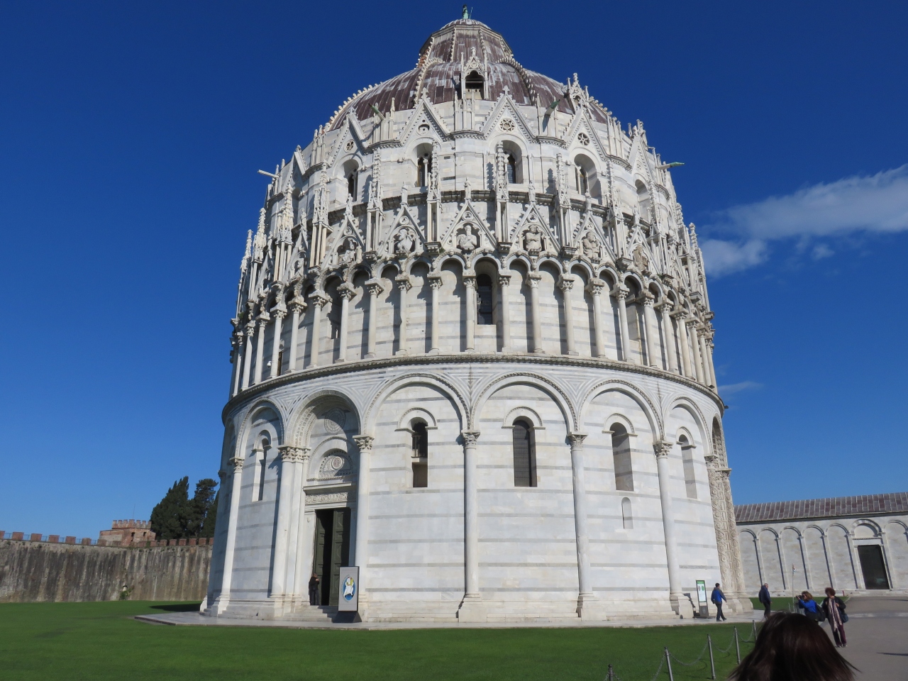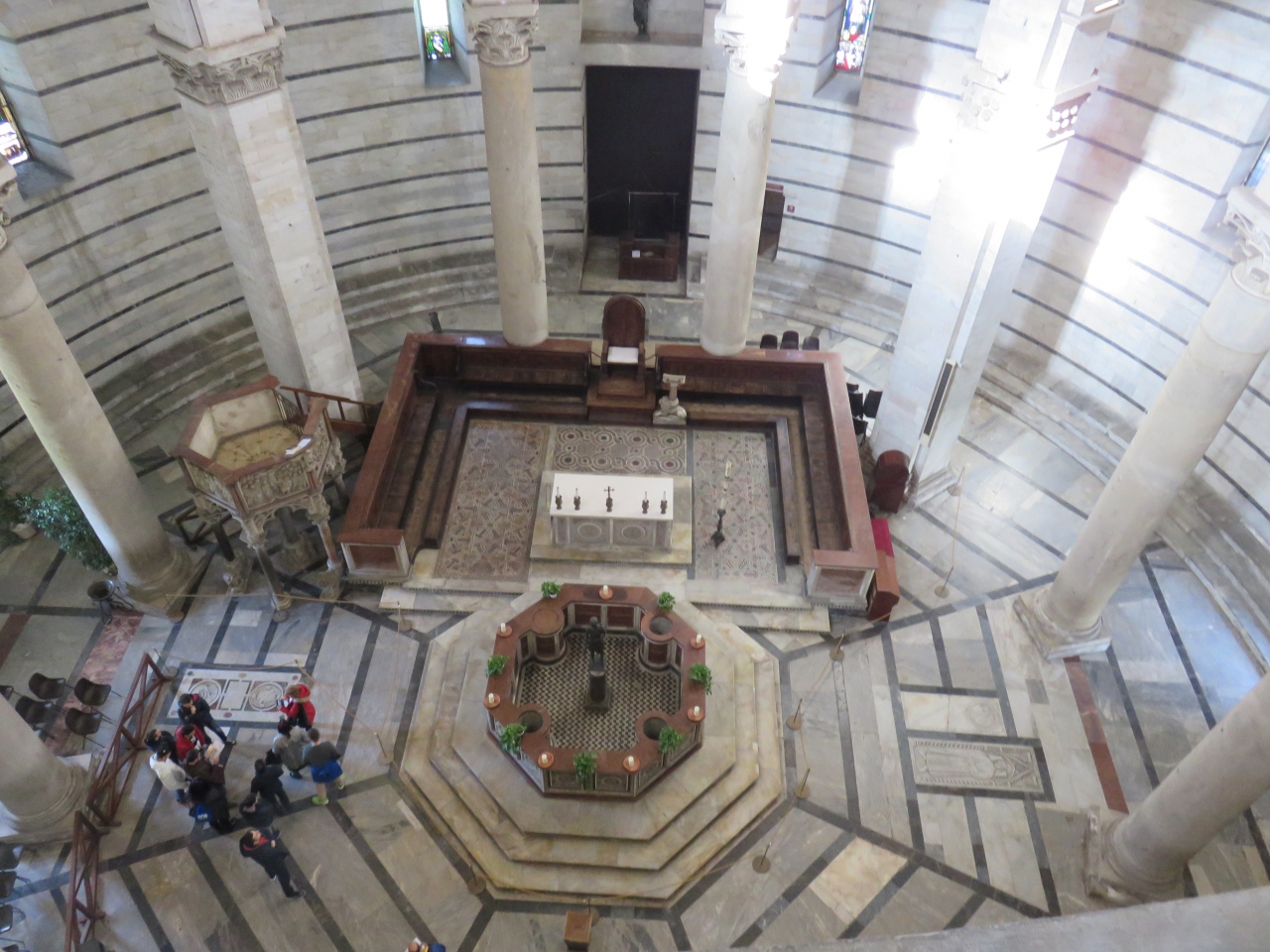 1203年の第四回十字軍遠征の際に、ピサ人が聖地エルサレムのゴルゴダの丘の土を船でここまで運ばせ、その上に建築した納骨堂と言われています。戦争で一時破壊されたようですが再建され、白大理石によるロマネスク様式の回廊に囲まれた、美しい中庭をもっていました。中世のフレスコ画が印象的でした。