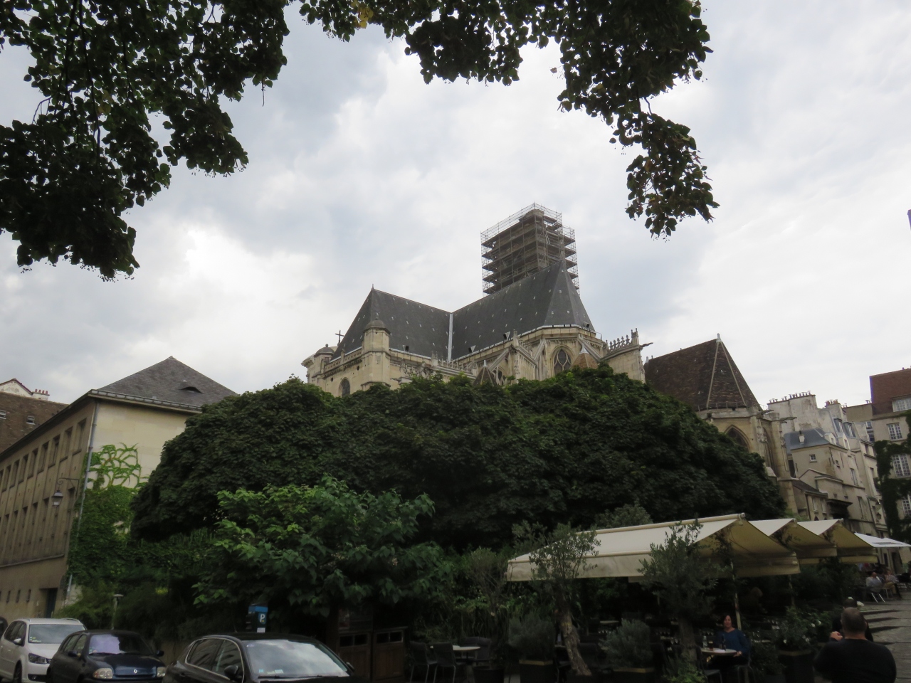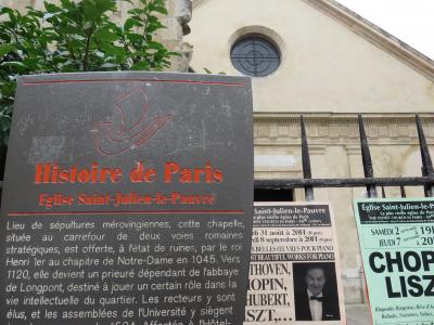 シテ島からのびるサン・ジャック通りから入った路地にあり、ノートルダム大聖堂からも近い位置にありました。この教会は、旅人や旅芸人の守護聖人として知られるル・マンの聖ユリアヌスに捧げられた教会でした。この小さな教会は、石造りの素朴な面構えはなかなか珍しく感じられました。