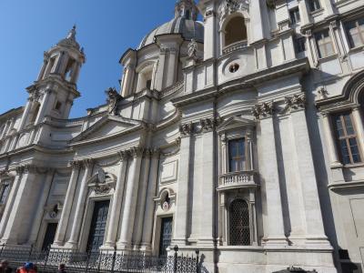 「4大河の噴水」の前に白亜の教会が建っていますが、この教会はバロックの奇才ボッロミーニの設計です。