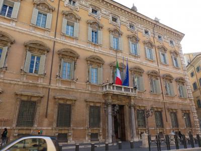 16世紀にメディチ家に嫁いだ神聖 ローマ皇帝のカール5世の娘であるマルゲリータ女王のために創建された宮殿で、その後、フランス王妃のカトリーヌ・ド・メディチやメディチ家出身である法王レオ10世、クレメンス7世もここで暮らしていたようです。現在は、この建物はイタリア上院として用いられているため、銃を抱えた警備の人の姿が見られ近寄れる雰囲気がありませんでした。