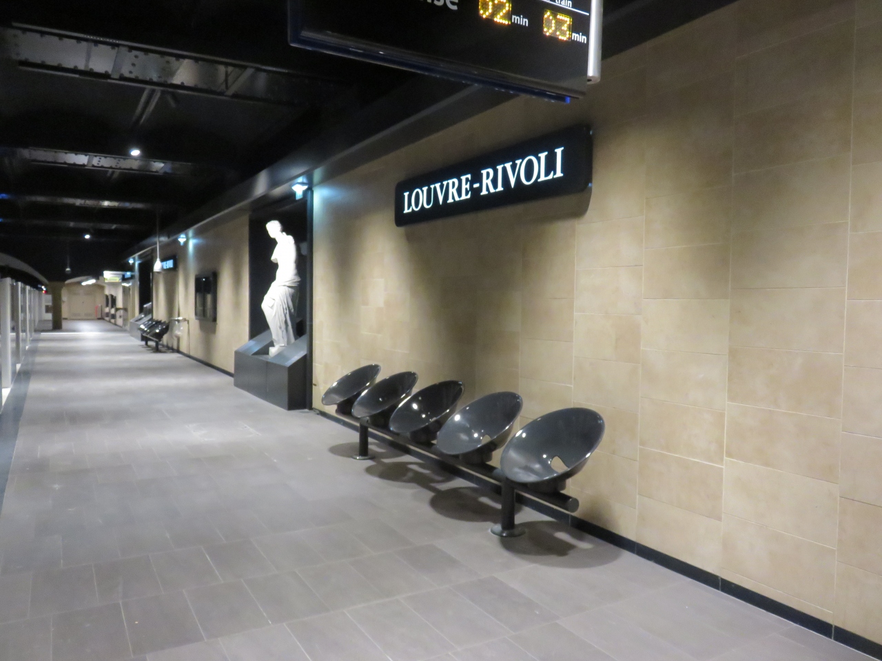 ルーブル美術館の最寄りの駅になります。この駅のホームには、ルーブル美術館に展示してある作品のレプリカが展示してありました。