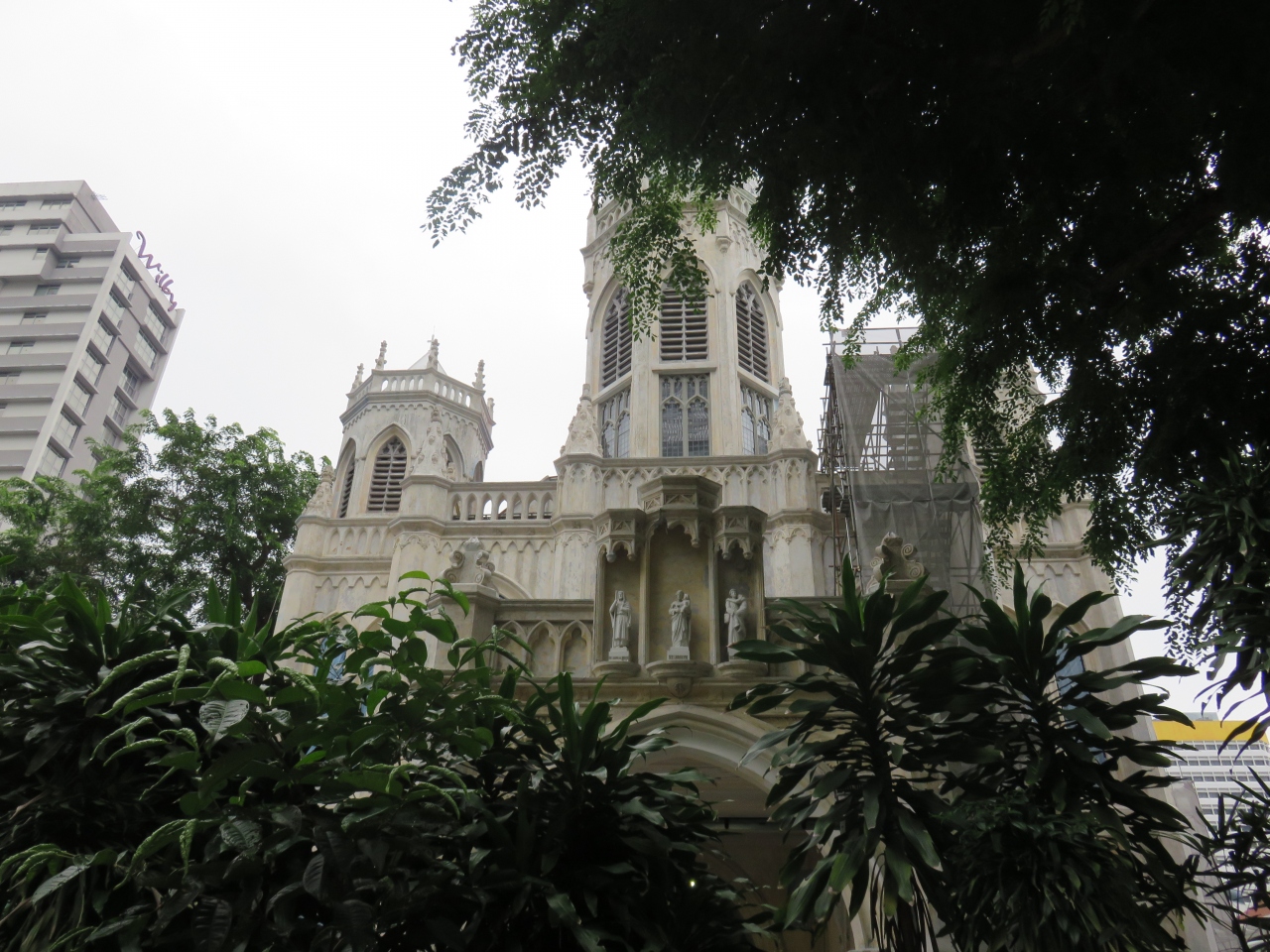 聖ヨセフを守護聖人とする教会で、もとは1853年に建てられたシンガポール最初のカトリック教会です。壮麗なドームを持つ現在の建物は、1912年に再建され優美なアーチ窓に囲まれた白い教会でした。当日は、工事中で中には入れませんでしたが、白を基調とした建物は清楚な雰囲気を感じました。
