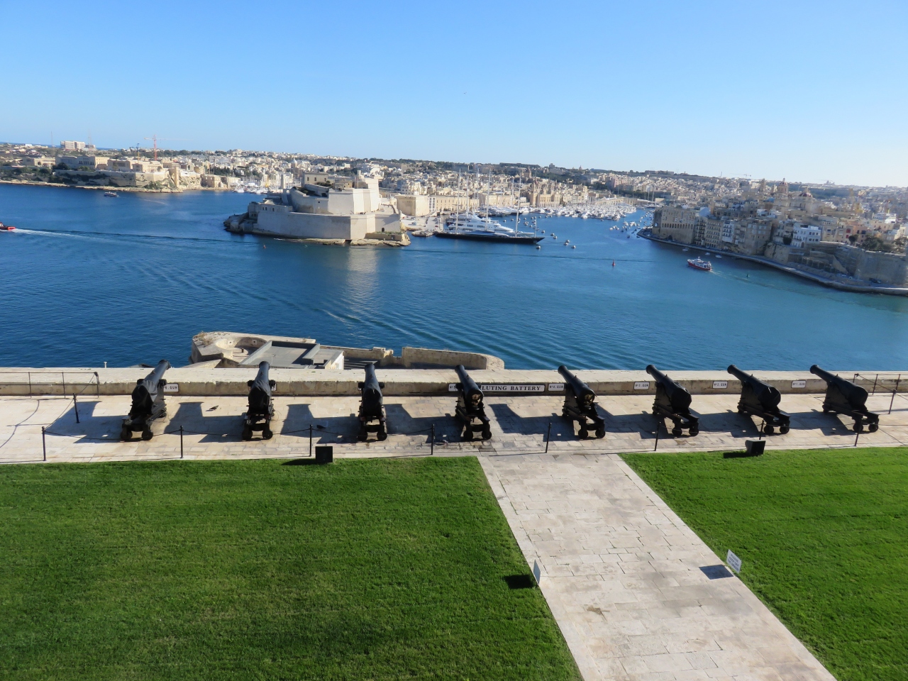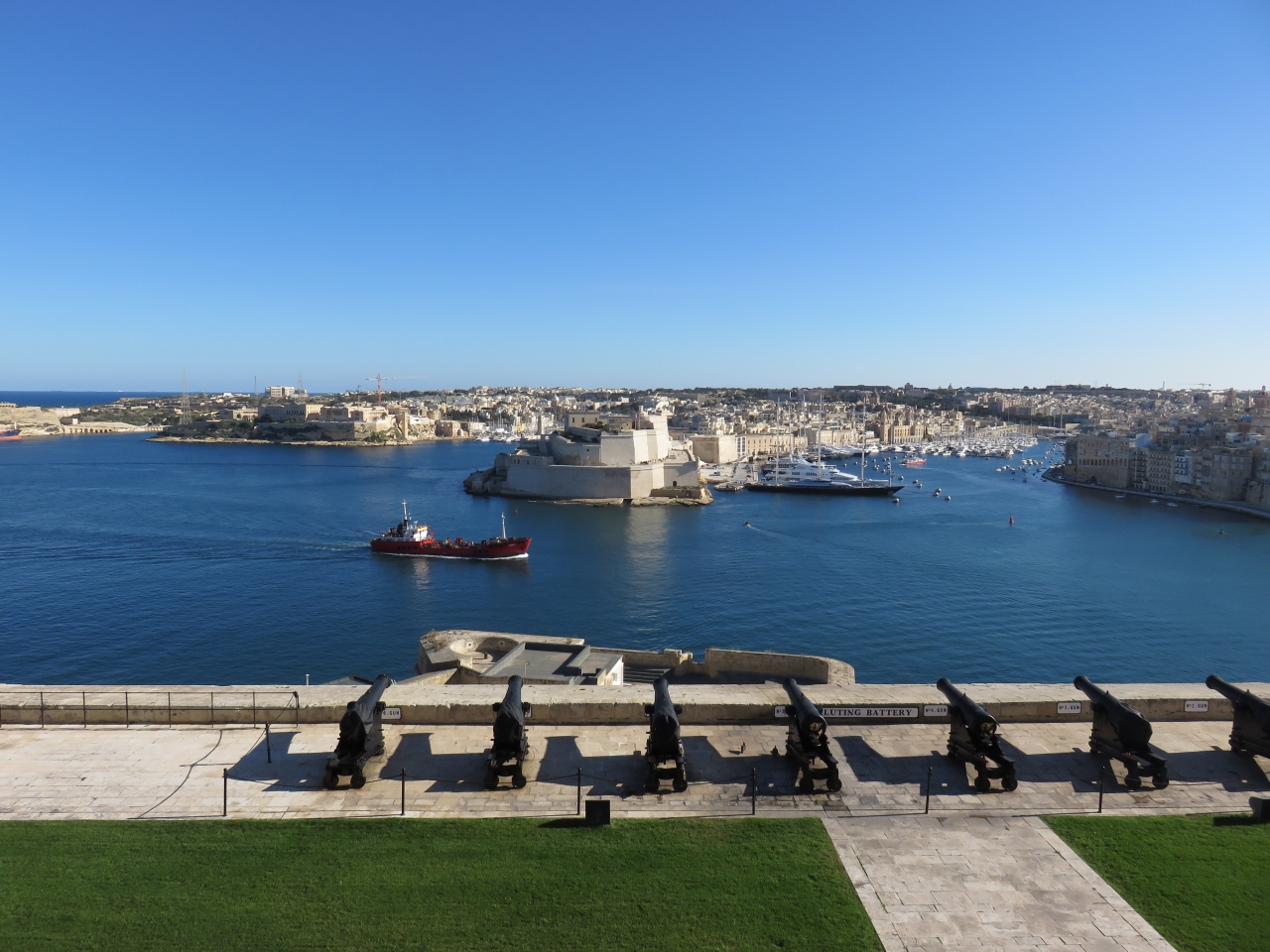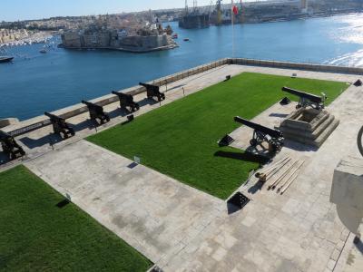 地中海随一といわれグランドハーバーを見下す展望デッキがあり、対岸にはスリーシティーズの街を見ることができます。昼12時と16時にはグランドハーバーを守るように構えられている大砲の空砲が発射され時報を知らせています。どちらも一瞬で終わってしまうので、待機して見る事が出来良かったです。