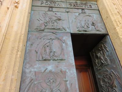 教会の外観は大理石と金色のしっくいに覆われ、巨大な扉はまるごとブロンズ製で、島内唯一のものだそうです。最初の教会は 1672 ~ 1678 年に建設されましたが、その後数世紀を経て、現在の姿が造られ扉は近年追加され、身廊と付属礼拝堂は 1930 年代に建てられたもののようです。協会内部は、装飾と光り輝く金色の細部装飾が全面に施されその豪華さに驚きました。
