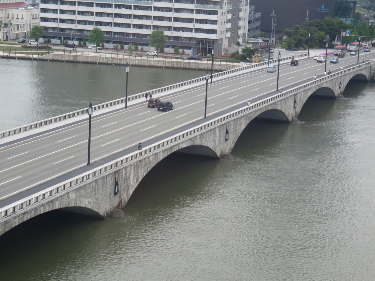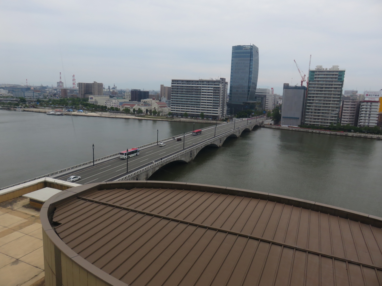 北前船の帆をモチーフに緩やかなカーブを描いたデザインで、20階の展望フロアからは