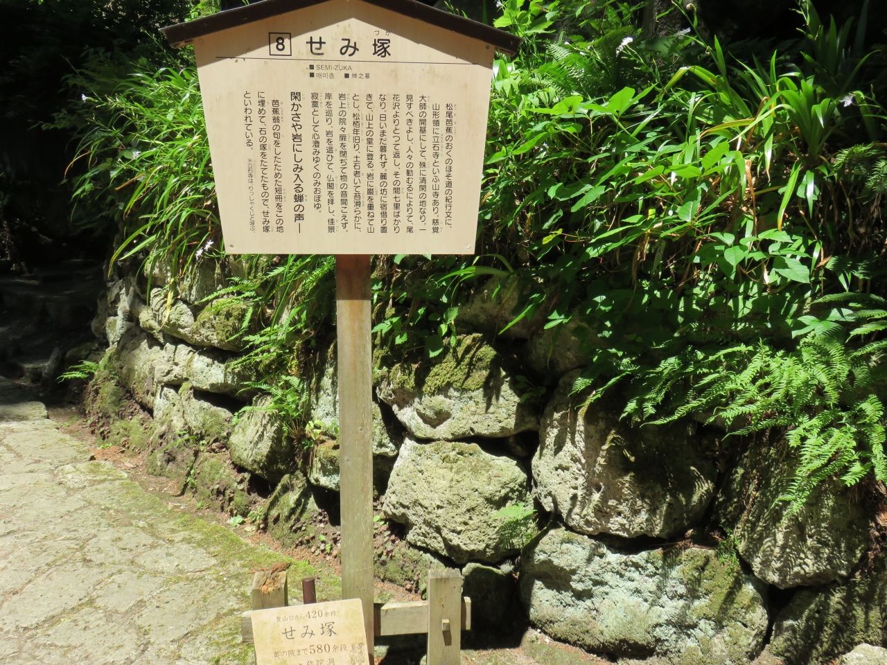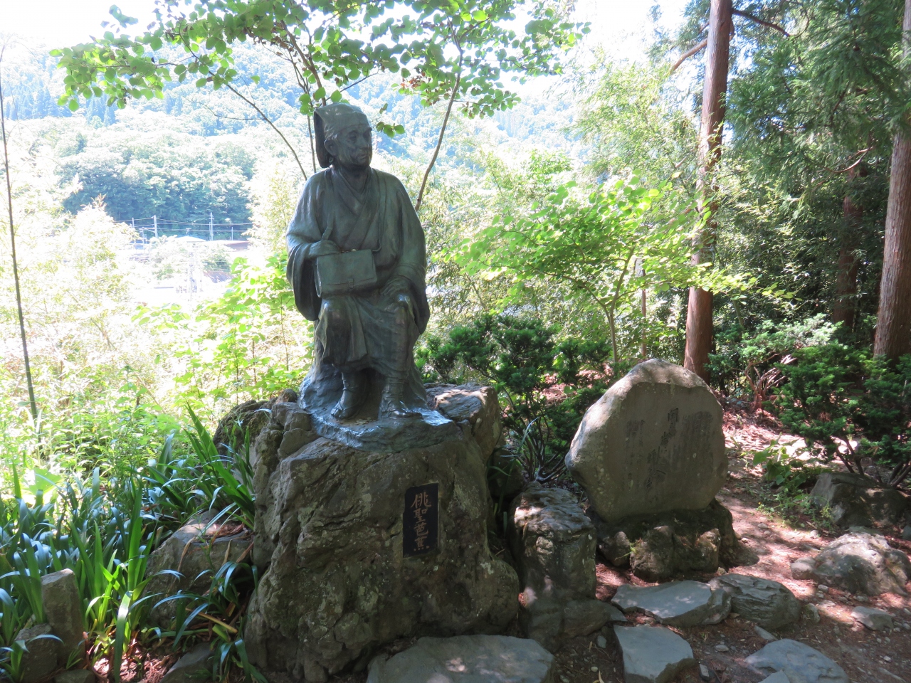 名句「閑さや 巖にしみ入る 蝉の声」を詠んだ俳人「松尾芭蕉」像があります。
