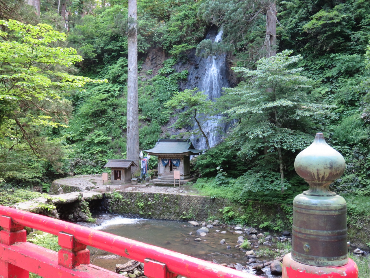 月山・羽黒山・湯殿山の三神を合祭した日本随一の大社殿で、