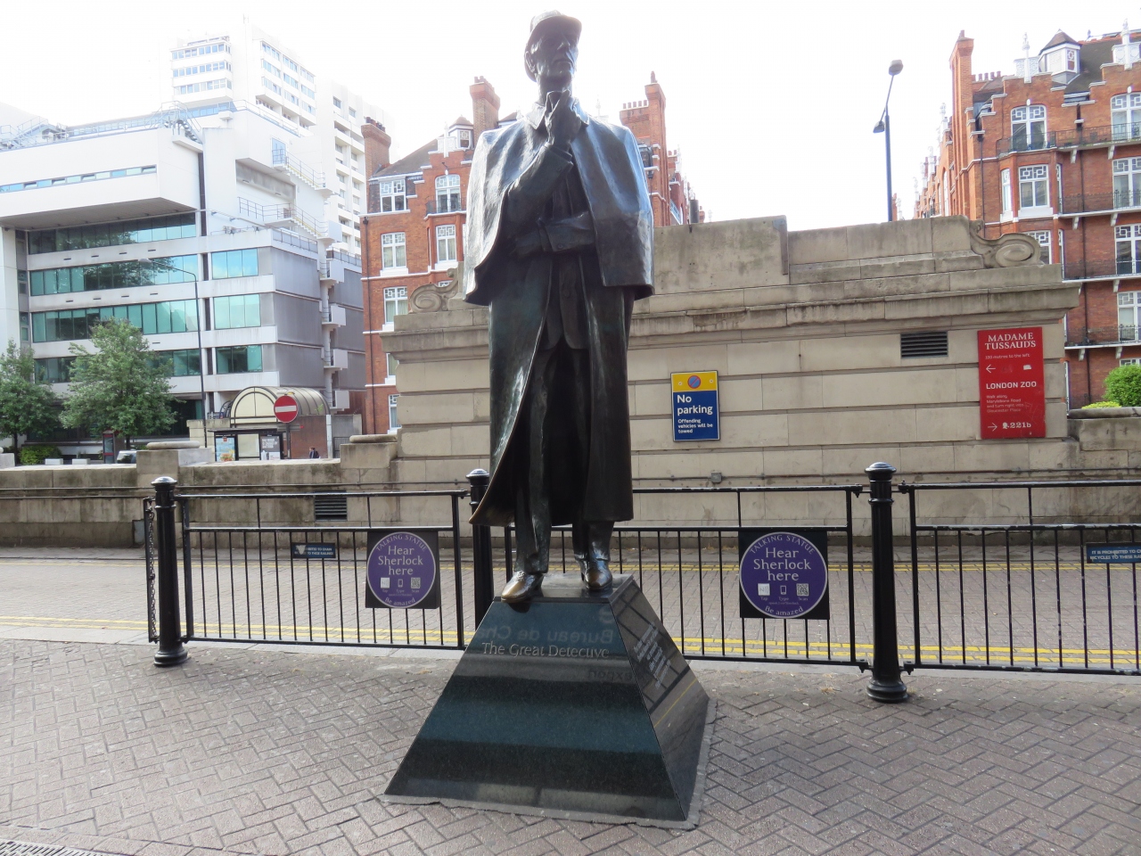 地下鉄ベイカー・ストリート駅を出て近いところで、シャーロックホームズ像を