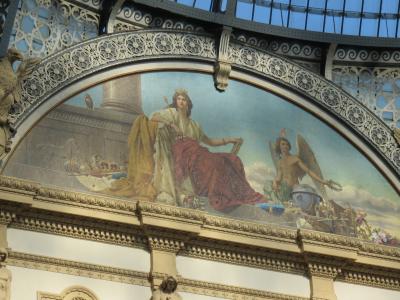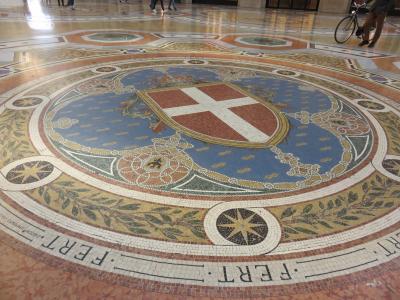この八角形のガラスドーム広場の床面には、中央にイタリア王国の紋章、