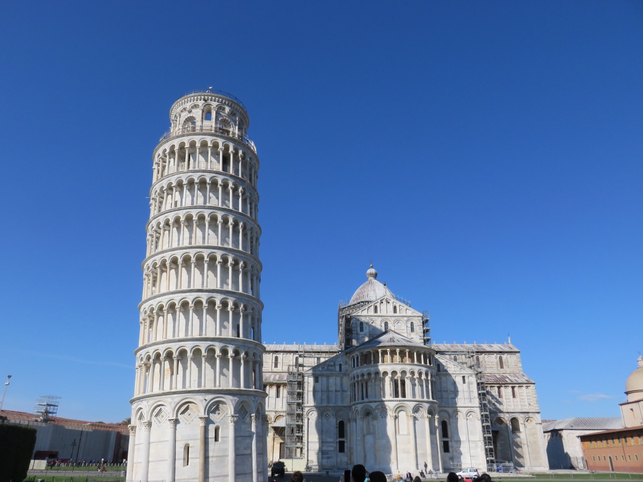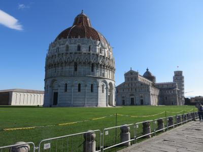 ピサのはずれにあるドゥオモ広場に建つ、洗礼堂、大聖堂、鐘楼、
