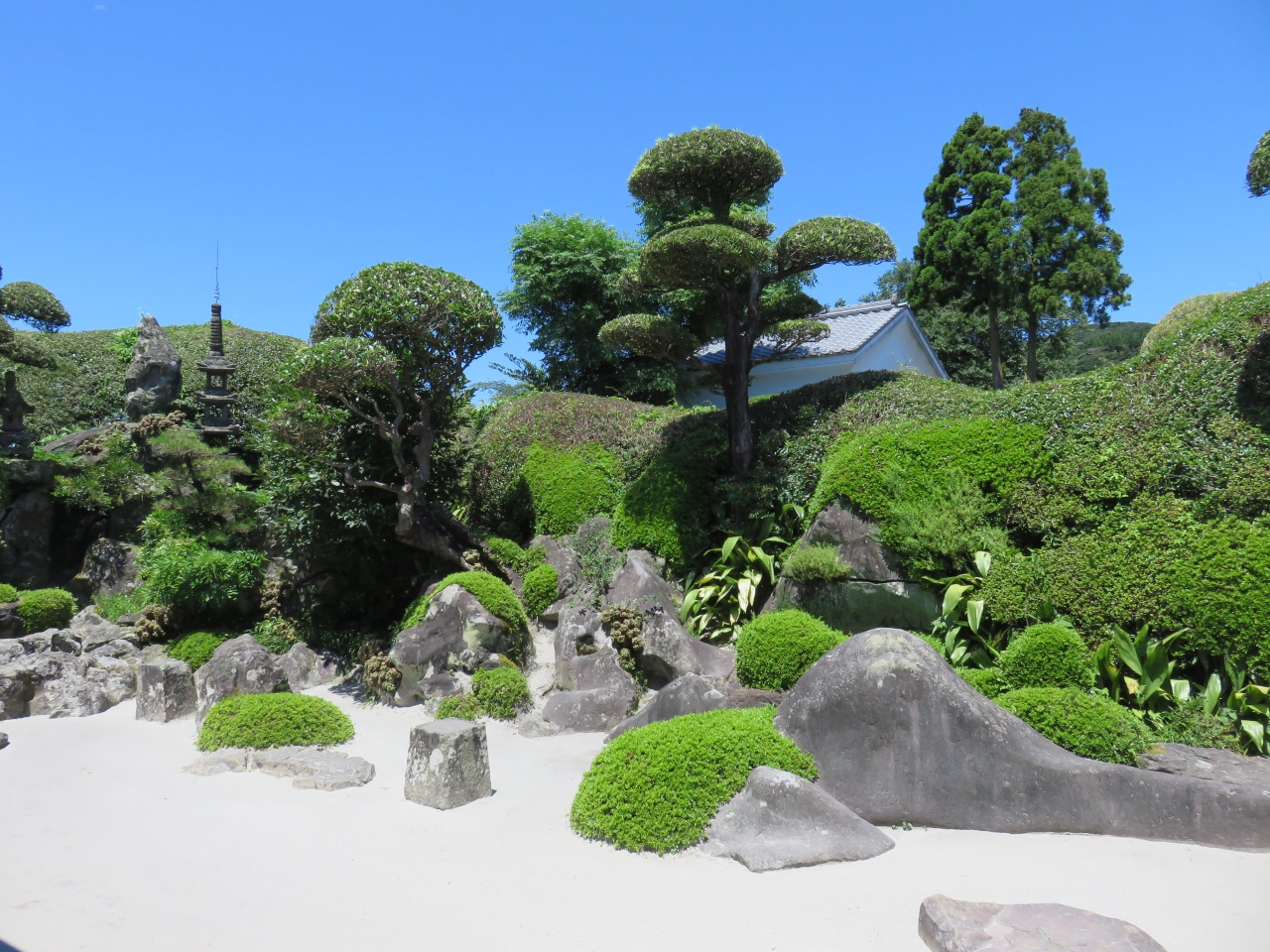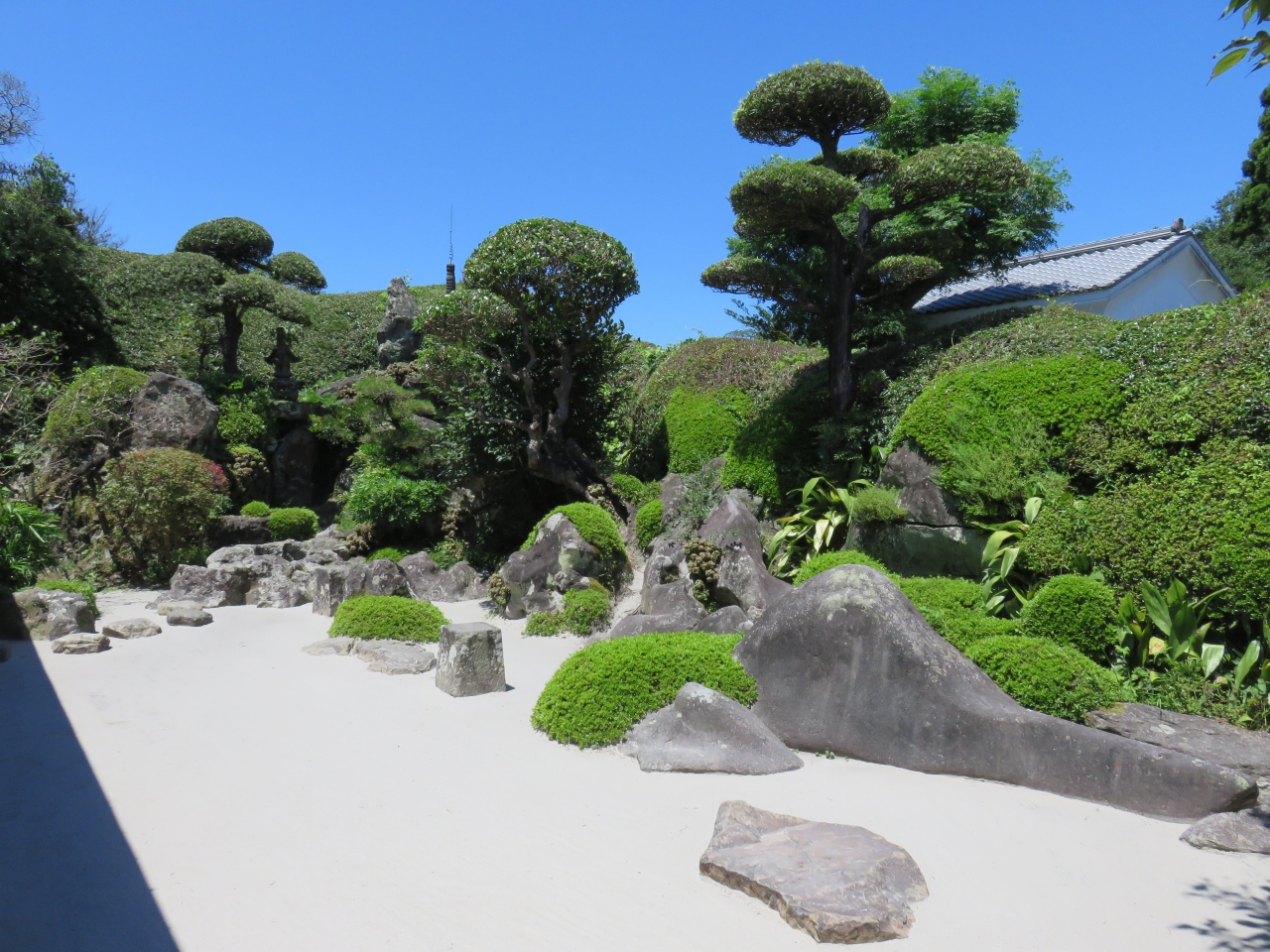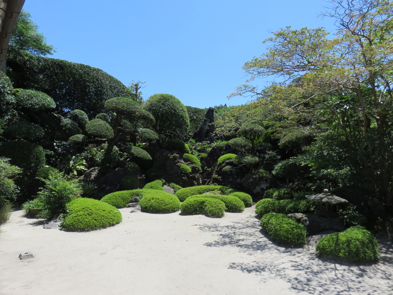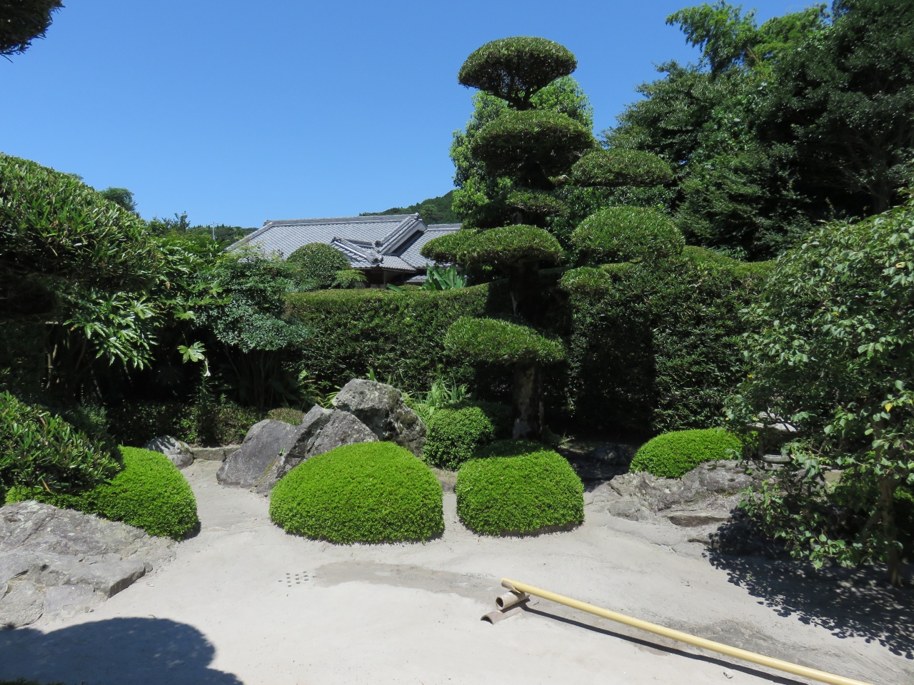 知覧麓では袖屋根を持つ門はそれが本家であることを表しています。枯滝を造り、築山の上部に石灯、下部の平地には、各所に巨岩による石組を設けています。- 旅行時期