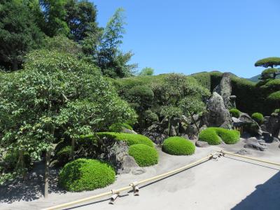 前面にはサツキの大刈込みが築山を表現して、2段構えの構図に仕立ててあります。- 旅行時期