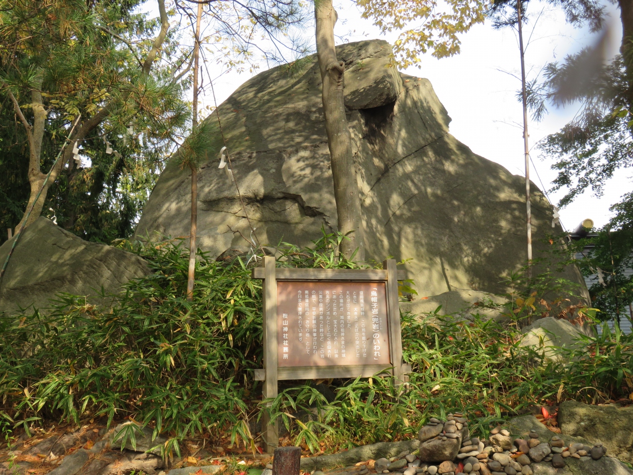 大きさ(高さ6.6m、周囲約20m)の岩で、神社境内の右側から階段を登ったところに、