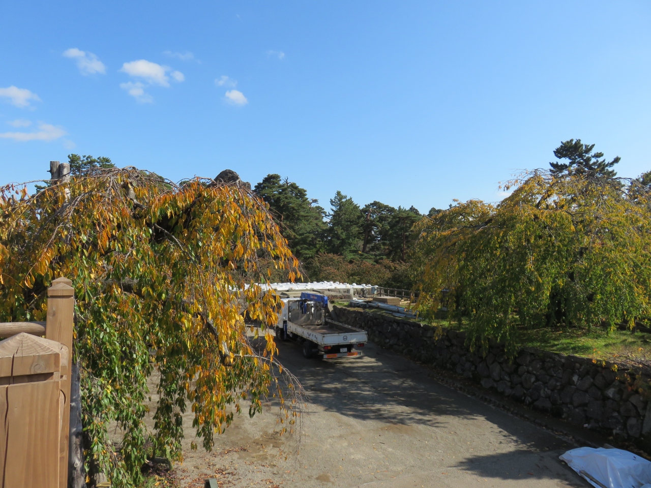 現在、弘前城本丸の石垣が外側に膨らむ「はらみ」がみられ、天守真下から石垣の一部を修理される事となりました。
