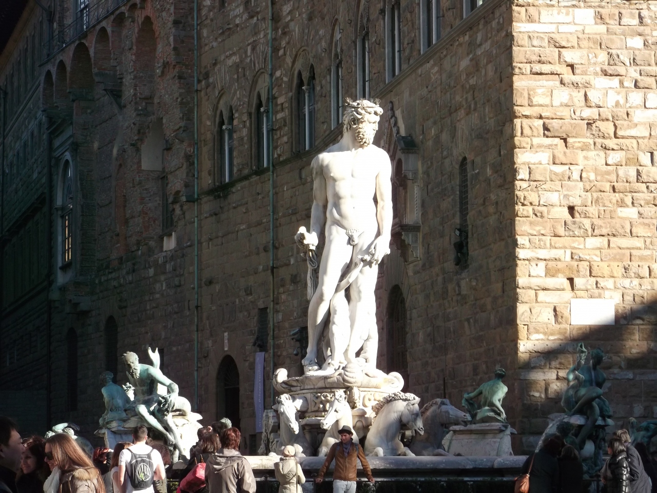 「ヴェッキオ宮殿」の横にある噴水で、バルトロメーオ・アンマナトティ作「海神ネプチューンの泉」です。