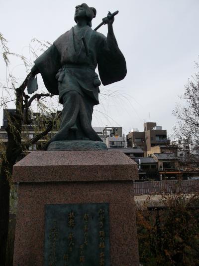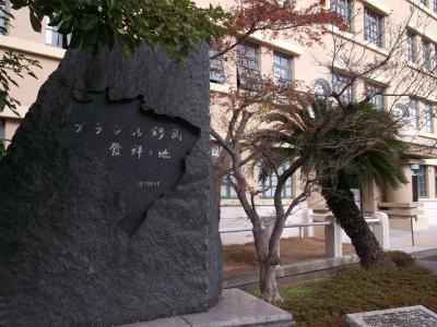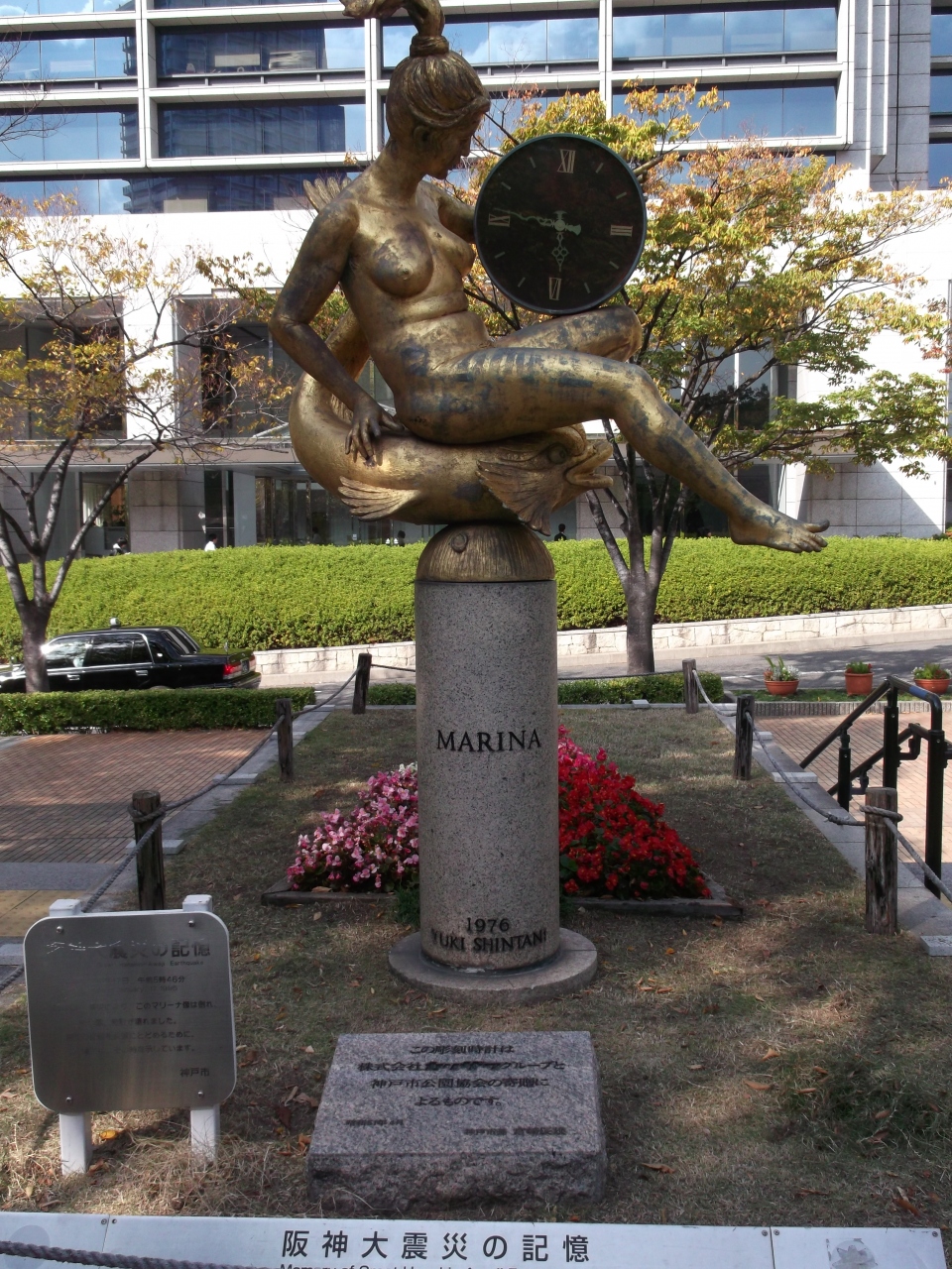 戸市役所の南端のフラワーロード歩道上に,暗緑色の台石の上に