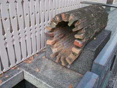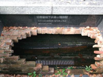 旧居留地十五番館の東玄関脇の歩道には日本最古の近代下水道である