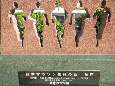 茶色の御影石に5 人のランナーの姿をくり抜いたモニュメントがあります。