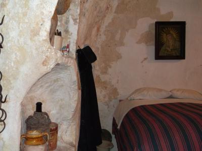 ビザンチン様式のフレスコ画が残る内部は、当時一般人の住居として