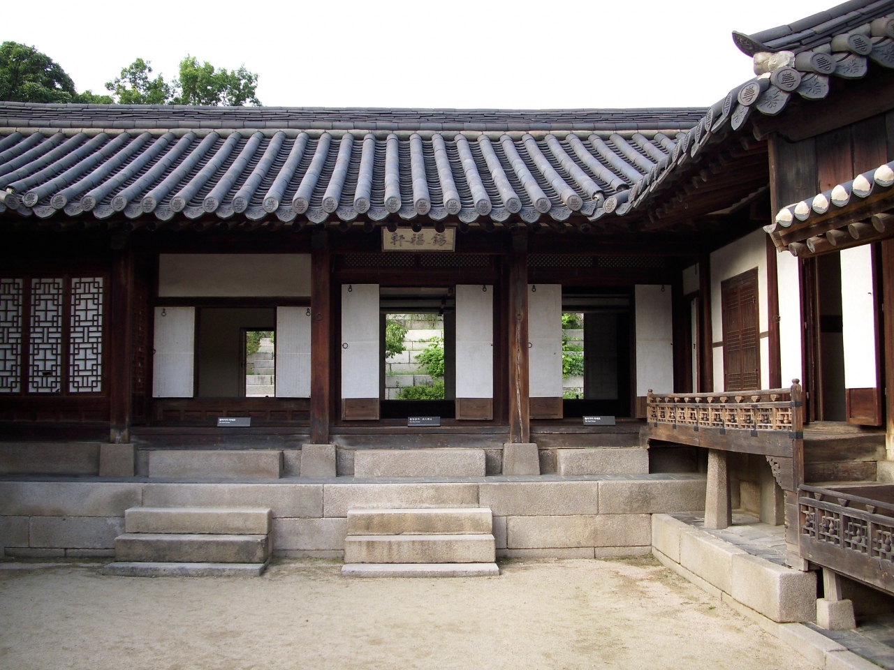 彩色していない質素な丸木や朝鮮和紙の白さが清々しく、