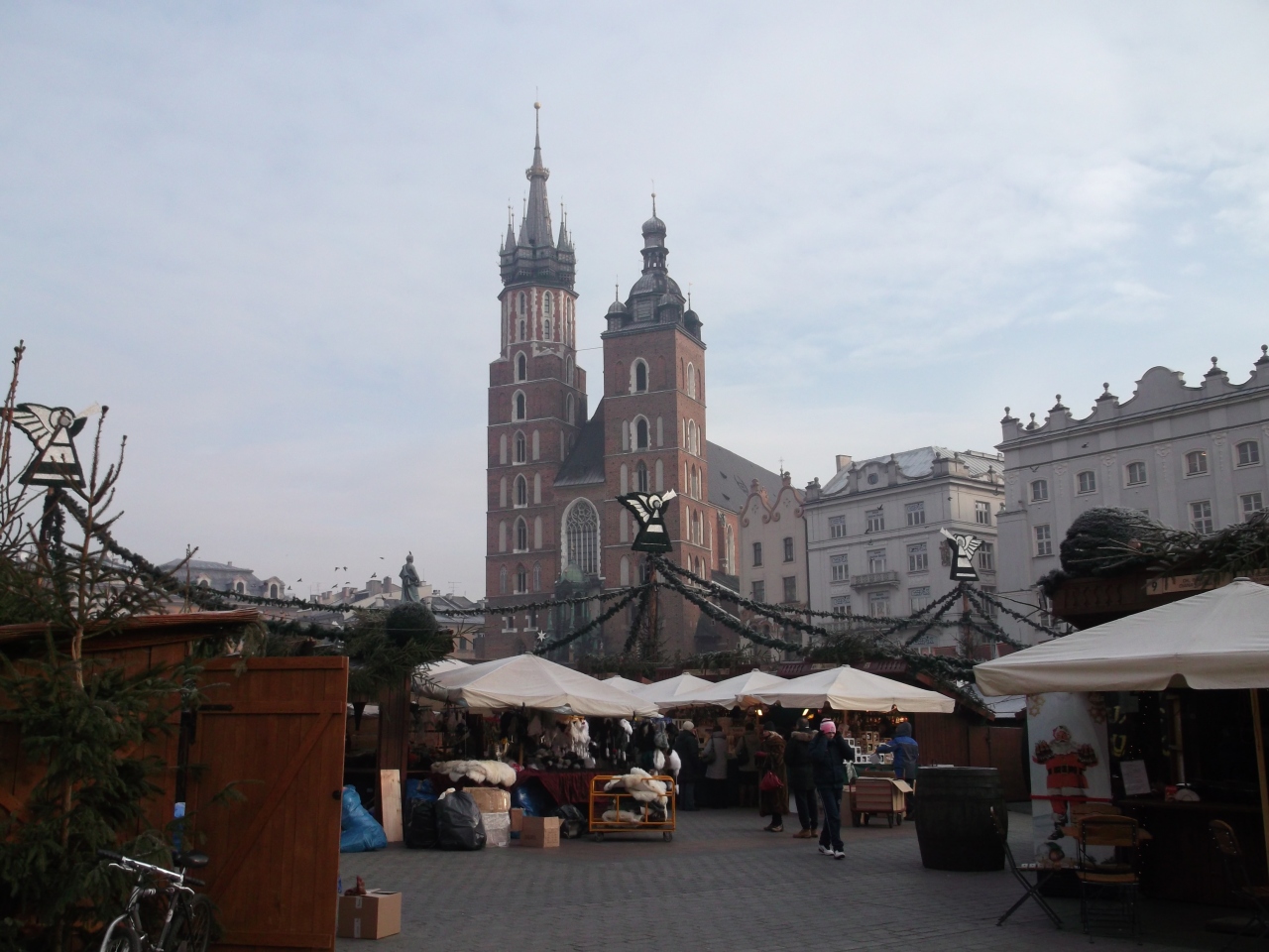 中央市場広場に織物会館があり、その周辺に聖マリア教会や