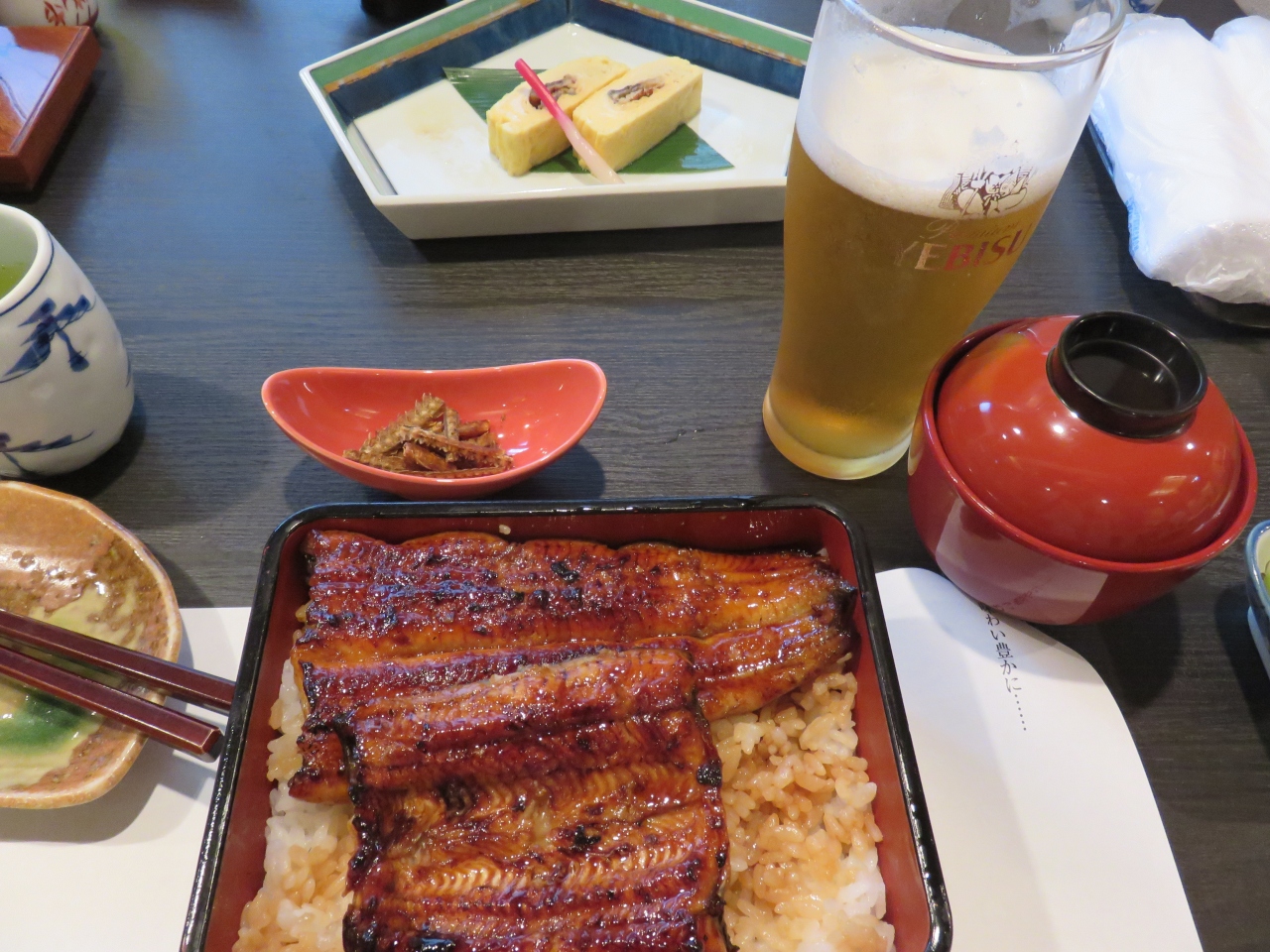 ビルの2階にありエレベーターを降りると落ち着いた雰囲気の店構えで、鰻は背開きして備長炭でじっくり焼かれていました。- 旅行時期