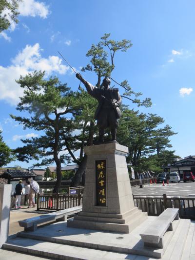この像は、松江城大手門の入口に立っていて出雲国富田城からこの地に移転されたようで