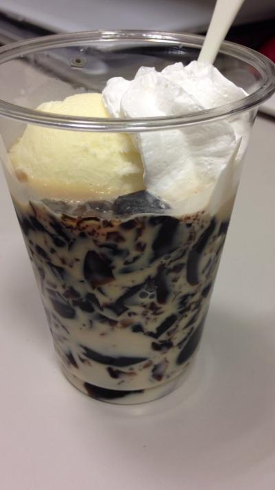コーヒーゼリーを注文しました。ドリンク類はすべてテイクアウトが可能だったのでした。とても感じの良い店員さんで好印象。コーヒーゼリー自体は食感、程よい苦味でおいしかったのですがアイスと生クリームが甘ったるく感じました。