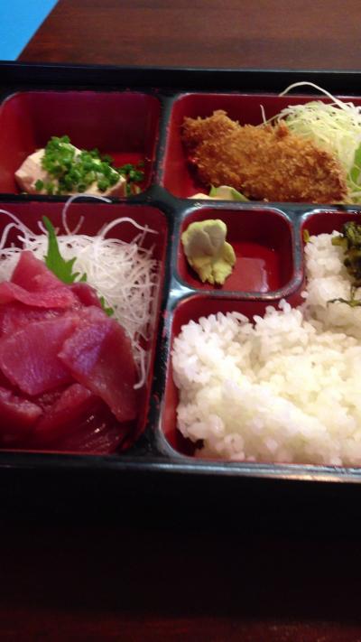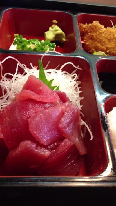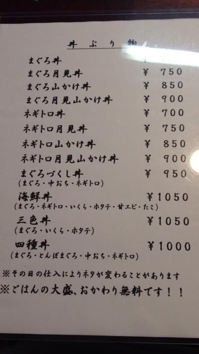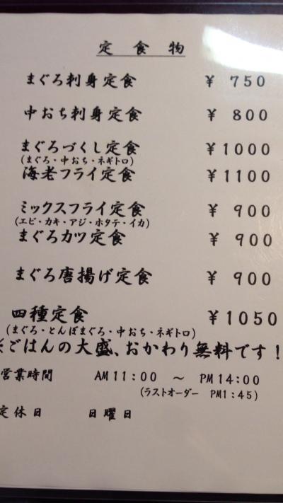 前回に引き続き今回も到着すると駐車場はすでに満車。回転率は良い店なのでしばらく待ってみると案の定空きました。店内はカウンターが空いていてすぐに座れました。女性ばかりの従業員さんです。丼と迷いましたが中おち刺身定食を注文しました。たっぷりの刺身とマグロカツがつきます。お刺身のボリュームは3人前くらいあるんじゃないと思うくらいたっぷりで食べ応えありました。
