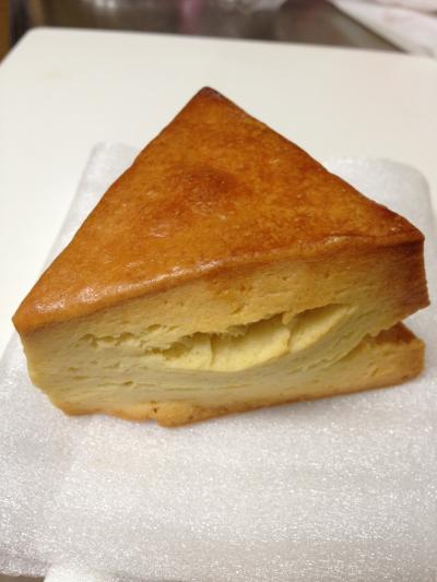 お店をのぞいてみるとスコーンが最後の一個でした。正三角形で珍しい形です。表面はツヤツヤとしているし横から見るとワニ口があいていて見るからにおいしいそうでお買い上げ。温めずそのまま何もつけなくてもおいしく頂けました。