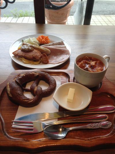 前回は夜だったのですが、今回はランチをいただきに再訪。前に売り切れで食べられなかった念願のプレッツェルを頂くことができました。ハムやソーセージも美味しいのですが、プッツェルが想像以上の美味しさ。太いトコと細いトコとで食感の違いも楽しめ本当においしかったです。トマトスープは思ったより酸味が全然なくてかなり好みの味でした。