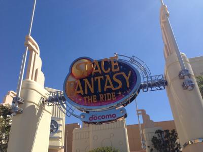 できたばっかりの頃、一度乗ったきりで久しぶりでした。ロッカーに荷物を預けた時点でも気付かず、どんなアトラクションだったかすっかり記憶がなくジェットコースター系だとは思わなくて油断していました。星が輝く宇宙空間の中を走り抜ける絶叫系のアトラクションです。荷物はすべてロッカーに預けますが、スマホだけは持っていけます。