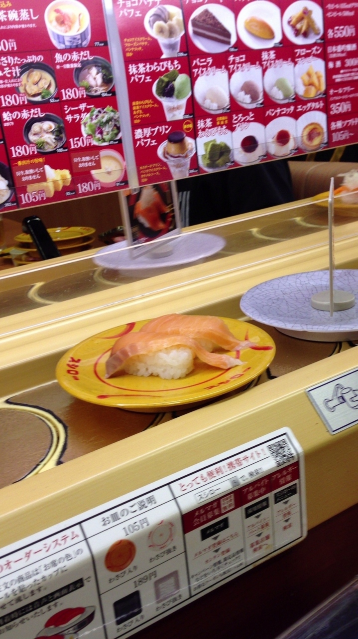 お財布の事情で夕食を安上がりに済まそうと100円寿司をチョイス。普段の外食のディナーにかかる予算の半額くらいの予算で食べられました。割と空いていたので注文してもすぐ流れてきました。安くておいしくて金欠のときの強い味方。