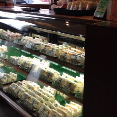 サンドイッチ専門店だけあって、おかず系からデザート系まで種類が豊富で迷います。ケーキ屋さんのように、ショーケースの中のサンドイッチを店員さんに注文して購入します。注文を受けて袋に詰めてお会計までを1人のスタッフがこなします。この為、思った以上に時間がかかります。メニュー表があるので並んでる間にある程度見ておくコトはできますが、いざ順番くると、売り切れのものもあるし、ショーケースを前にあれやこれや迷うのも当然で、選びながら注文をするのでそれなりに時間がかかります。接客は1人なのに対して、厨房に4人ほどスタッフがいました。せめて3、4組並んでいる時は 袋詰めか、会計くらい手分けするなどして欲しかったです。途中で帰っていった人もいました。