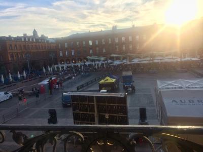 フランスの都市は市庁舎が中心地にあって、だいたいその前に広場がありカフェが集まっているというつくりになっているところが多いです。トゥルーズは市庁舎も薔薇色で、建物の中も絵画など見所たくさんです。広場前のカフェでゆっくりしよう。
