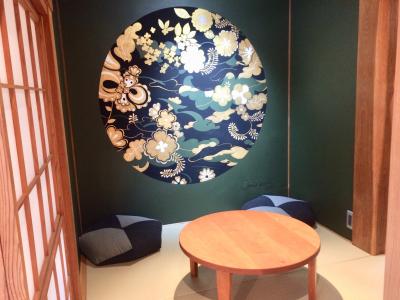 1階がカフェになっていて、図書館みたいにいろんな本がいっぱいあります。そしてそれぞれのお部屋がちょっとアートっぽくテーマを持ってデザインされてます。二階がホテルで、洗濯機もあって長期滞在にも向いてます。お風呂は温泉使えます。