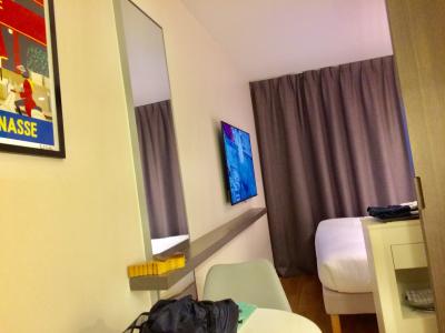 観光名所からは徒歩で20分程度、駅からは徒歩で15分以内の距離にあるので、車がない旅行でも、スーツケースゴロゴロして移動できます。部屋は、イビスの中では比較的広くて機能的です。朝食はホテルでとらずに、観光スポットのエリアでもカフェが色々あります。