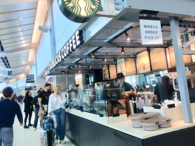 期間限定で、JALさんが直行便を運航しているので、非常に楽です。ほとんどビジネスユースなので、日本人以外の客層も静かです。お土産やさんの種類は比較的少ないので、街中で購入する方が良いかもしれないです。飲食するところは割と選択肢が広くて、そんなに混雑しないです。スタバは一軒あり、ちょっと並びました。LAXとかに比べると、こじんまりして迷わないです。