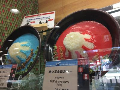 富士山のカレーが二種類あります!色がとても鮮やかで、水色と、からそうな赤があります。ここのレストランで食事をすることもできるし、レトルトカレーもお土産屋さんで売っているので、時間なくてもご家庭で、富士山のように盛り付ければ再現できるかもしれないですね。